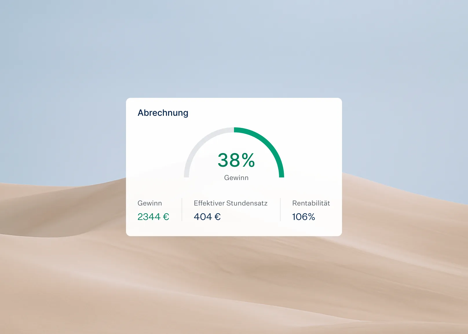 Während Sie eine Rechnung bearbeiten – Zeit hinzufügen, Stundensätze anpassen oder Abschreibungen vornehmen – aktualisiert das System alle wichtigen KPIs in Echtzeit: Gewinnmarge, Realisierungsrate, effektiven Stundensatz.