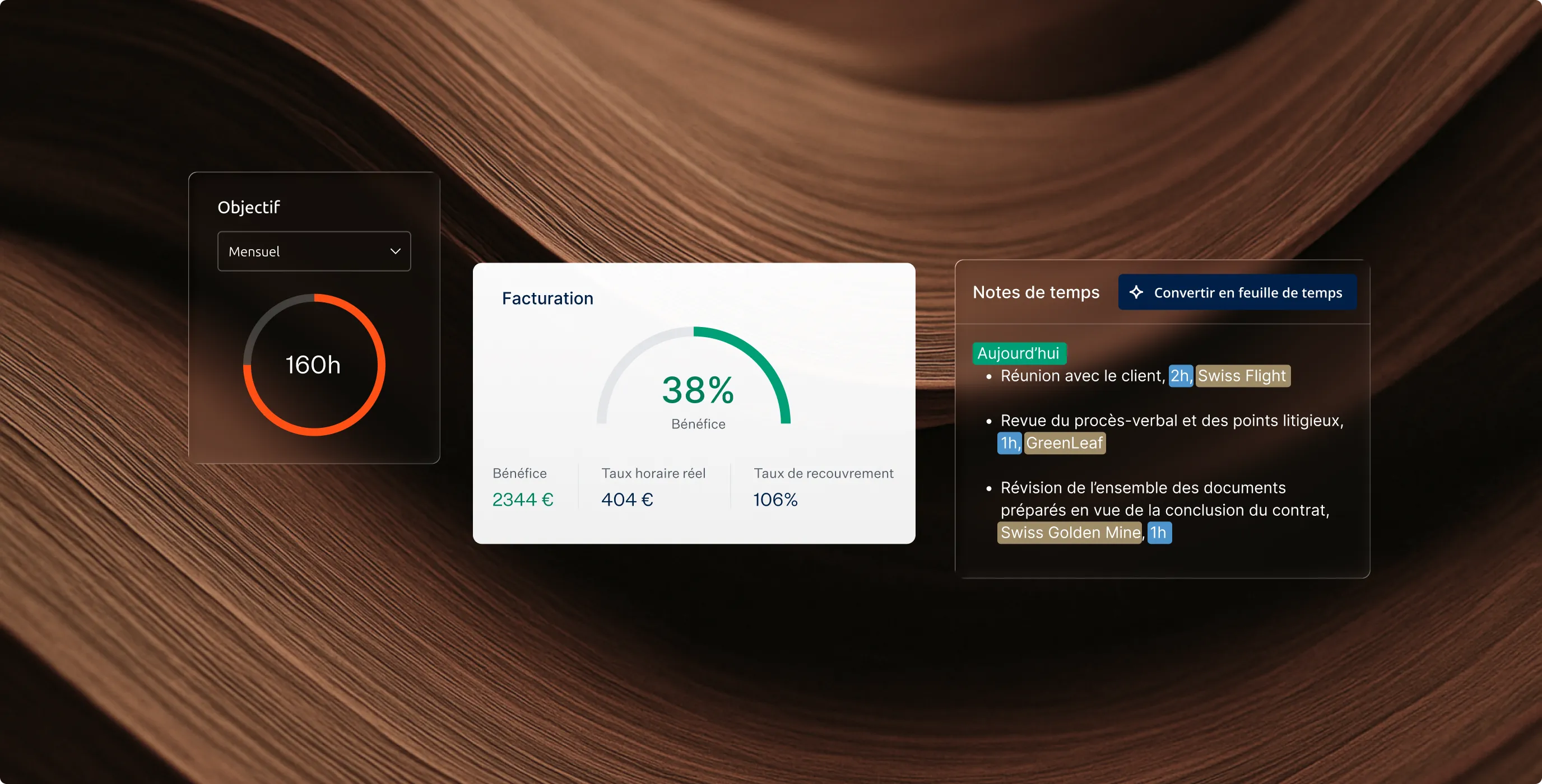 Création automatique des feuilles de temps — même à partir de mémos vocaux.