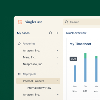 AI is transforming the legal industry — and SingleCase is built to help you lead that change. Manage matters, documents, billing, invoicing and reporting in one smart platform.
