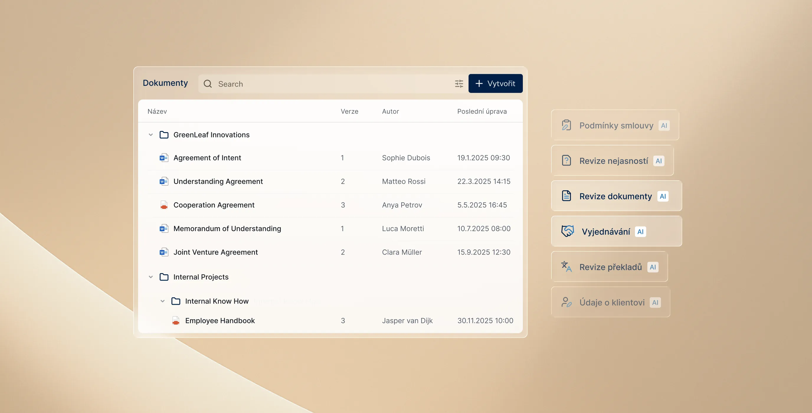 Počínaje intuitivní správou dokumentů až tvorbu dokumentů s využitím AI nebo automatické vykazování — všechny funkce pomohou vaší kanceláři pracovat rychleji, uvažovat jasněji a dosahovat lepších výsledků.