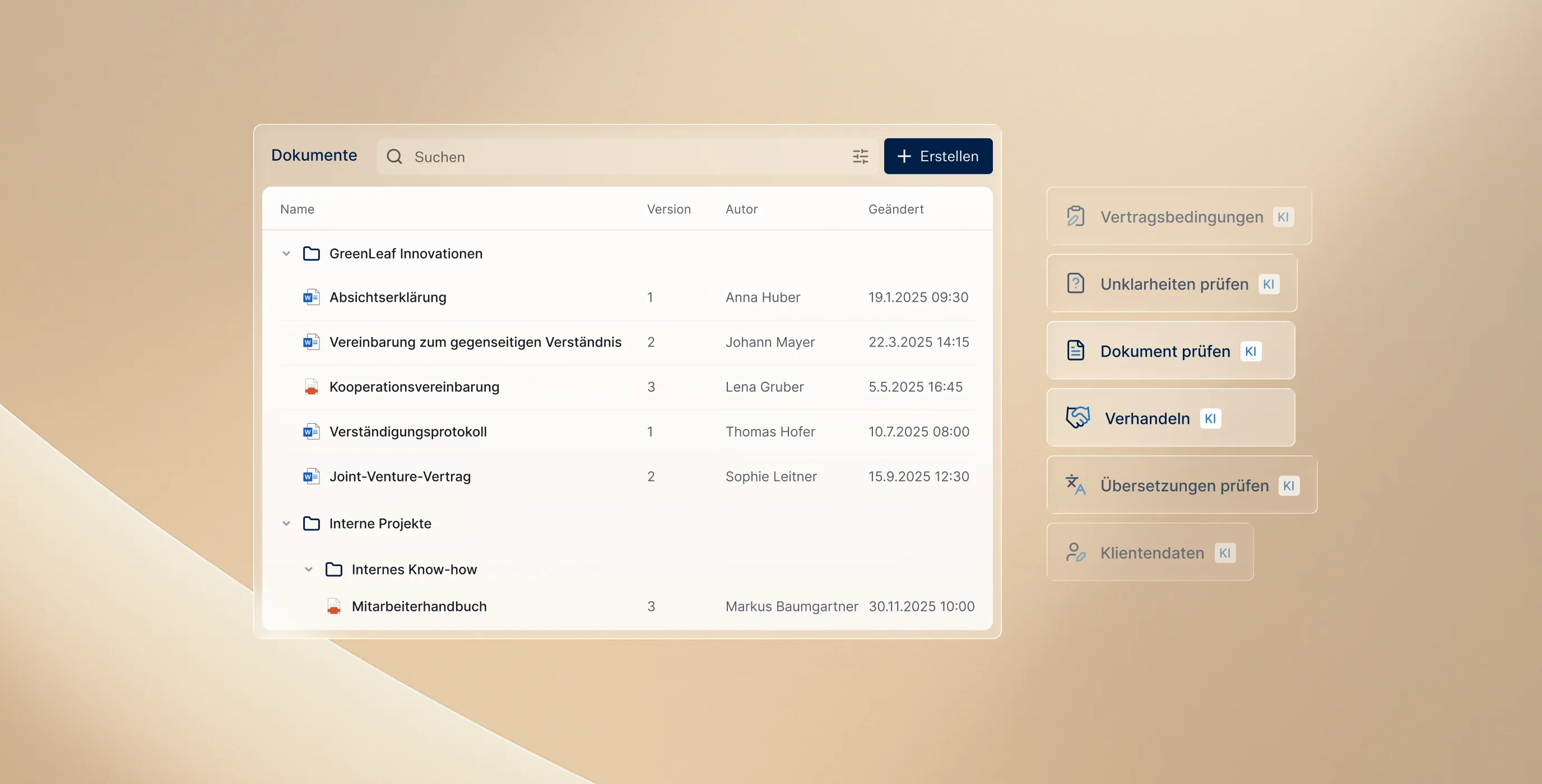 Vom intuitiven Dokumentenmanagement über die KI-gestützte Dokumentenerstellung bis hin zur automatisierten Zeiterfassung – jede Funktion ist darauf ausgelegt, Ihre Kanzlei schneller arbeiten, klarer denken und bessere Ergebnisse liefern zu lassen.